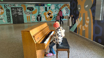(Kuvat alimpana) Kuopustyttö kävi erikseen Matti-vaarin kanssa Myyrmäen maalaismarkkinoilla ja juna-aseman pianoa kokeilemassa.
