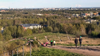 (Kuvat yllä) Toukokuussa retkeilimme läheiselle Malminkartanon täyttömäen huipulle Helsingin ja Vantaan maisemia ihailemaan.