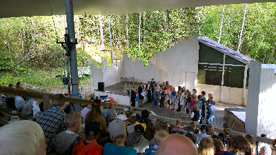 (Kuva yllä) Pääsimme mukaan "Lähettien kotiväen päiville" Ryttylään huhtikuussa. Miniämme on tässä esitysvuorossa.