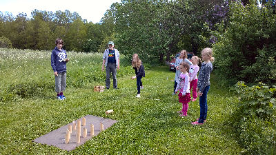 Ennen Laurin perheen lähtöä kolmannelle työkaudelleen Japaniin (16.6.) pidimme ”Palmujen leirin”, jonka osanottajina parin-kolmen päivän aikana olivat Laurin ja Jounin lapset, kuusi koululaista. Kesäkuun lopulla olivat vuorostaan Saulin kaksi poikaa mökkikylässä kolmen päivän ajan.