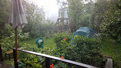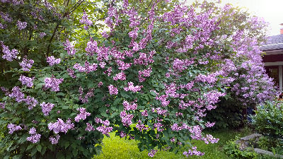 (Kuvat yllä) Kesäkuun ilmat olivat virkistävän vaihtelevat; Palmurannan sireenit kukkivat poutasäässä... ja toisinaan taas tuli rajusti vettä!