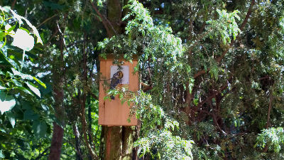 (Kuva alempana) Mökin saunan nurkalla sinitiaisperheen vanhemmat olivat ahkerina koettaessaan ruokkia äänekkäitä poikasiaan.