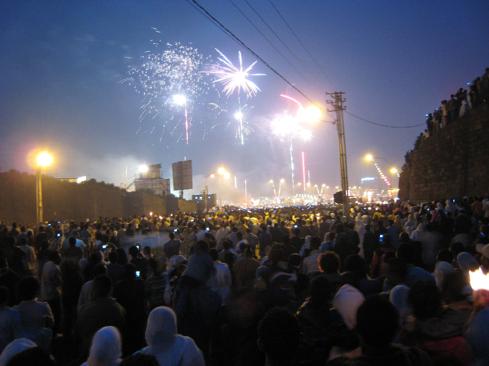 Kokon syttyessä illan pimetessä alkoi myös komea ilotulitus. |